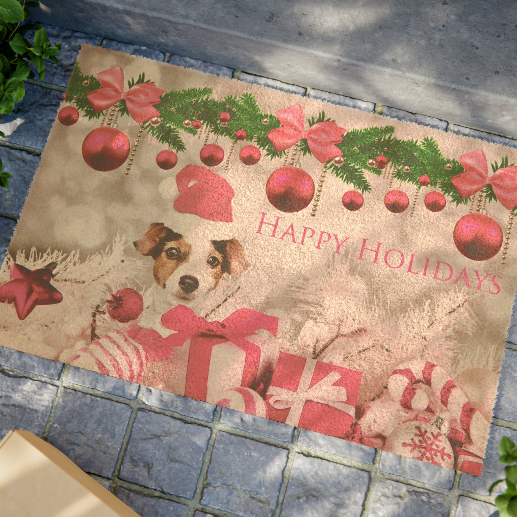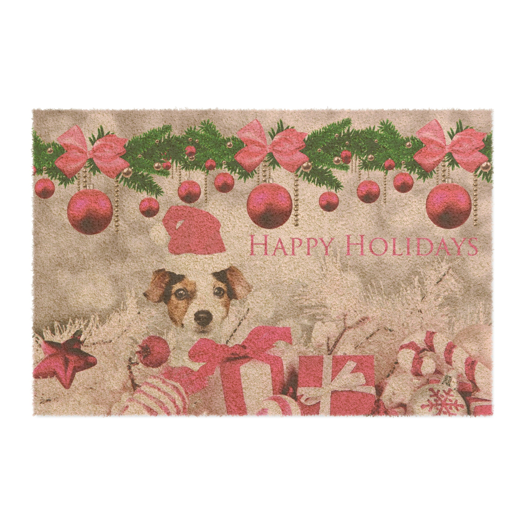 Welcome Santa Paws with a Pretty in Pink Puppy Christmas Doormat - Your Home's Perfect Holiday Touch!